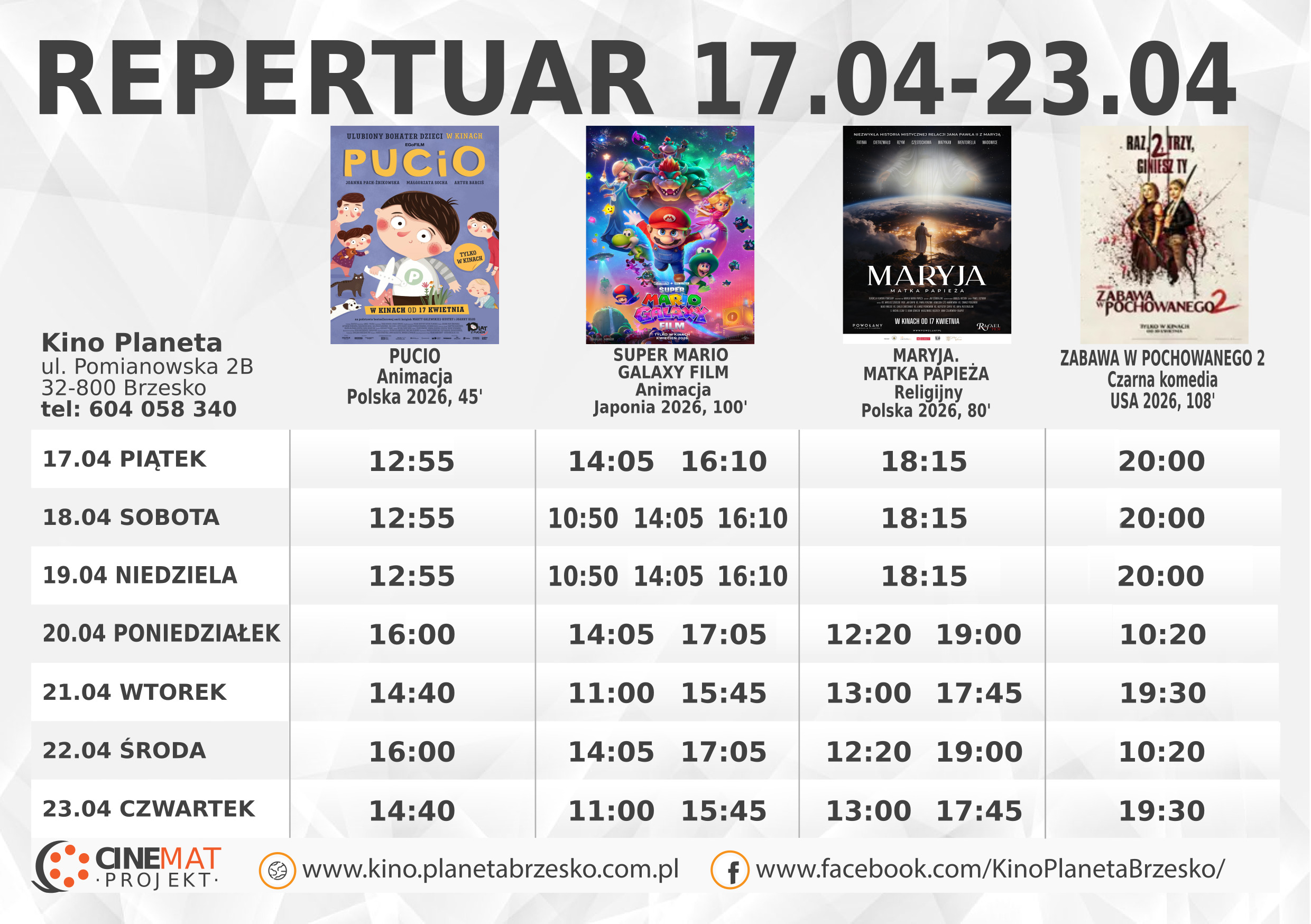 KASA KINOWA JEST CZYNNA ZAWSZE GODZINĘ PRZED PIERWSZYM SEANSEM!!!